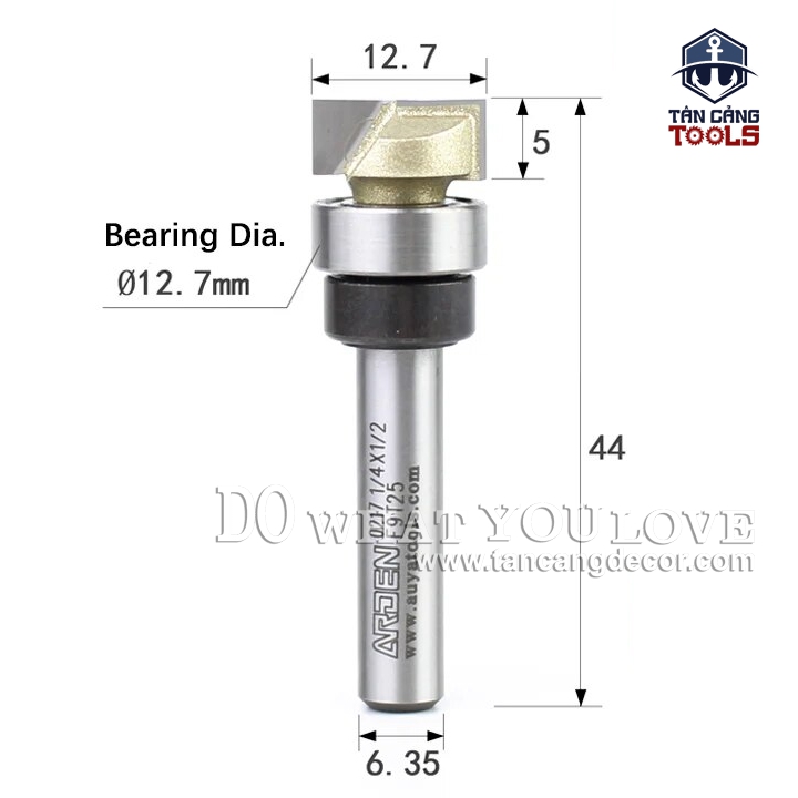 Mũi Router Arden Phay Thẳng bi trên 12.7 x 5 mm Cốt 6.35 mm Arden 0217