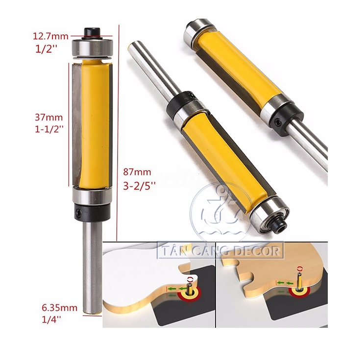 Mũi Router Phay Thẳng Bi Trên – Dưới 37mm Cốt 6.35 mm