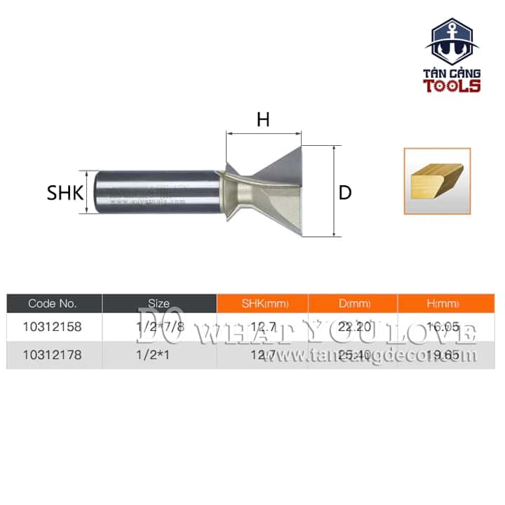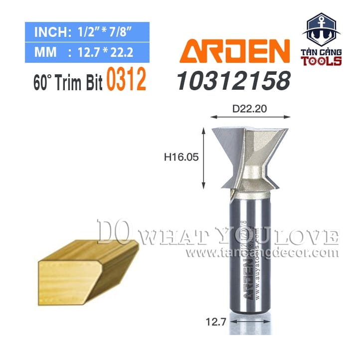 Mũi Router Tay Vát 60 Độ 0312 Arden 16.05 x 22.2 mm Cốt 12.7 mm