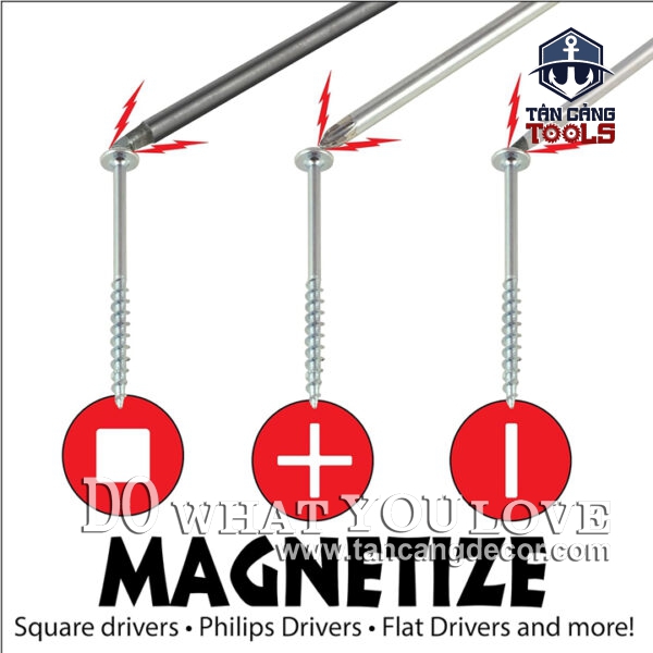 - Sản phẩm có tác dụng khử từ ⊖ và từ hóa ⊕ đầu nhọn tô vít, cờ lê lục giác, v.v…