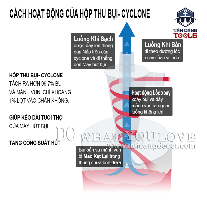 LƯU Ý:Cyclone nhựa không được thiết kế để sử dụng với than nóng, tro nóng, hoặc bất kỳ chất lỏng hoặc bụi dễ nổ / dễ cháy nào.