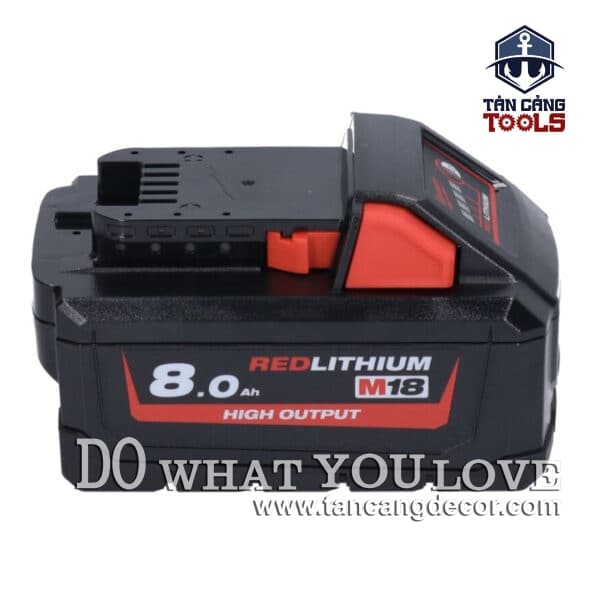 - Pin MILWAUKEE M18 ™ 8.0AH REDLITHIUM ™ -ION M18 HB8 Mang lại thời gian chạy tối đa, công suất tối đa và nhiều lần sạc hơn so với pin lithium-ion tiêu chuẩn.