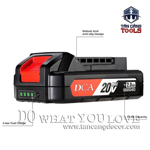 - Với các tính năng nổi bật và đảm bảo an toàn khi sử dụng, Pin thay thế máy khoan DCA dòng 20V dung lượng 2.0 ampe.