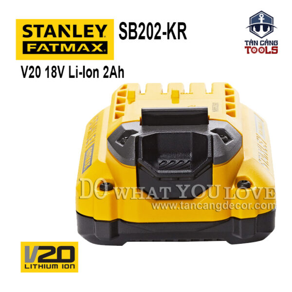 - Pin 20V 2.0Ah Stanley Fatmax SB202-KR có thiết kế nhỏ gọn, thời gian sạc nhanh và độ bền cao.