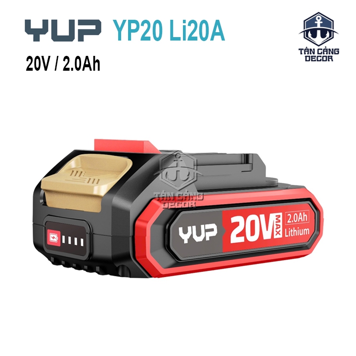 - Pin 20V / 2.0Ah YUP YP20 Li20A có thể được sử dụng cho các dụng cụ điện không dây 20V thương hiệu YUP.
