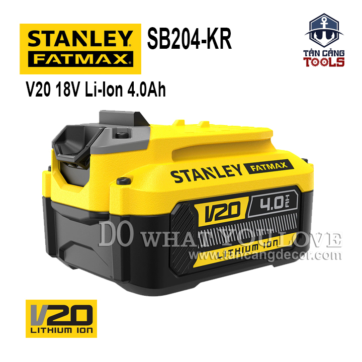 - Pin 20V 4.0Ah Stanley Fatmax SB204-KR có thiết kế nhỏ gọn, thời gian sạc nhanh và độ bền cao.