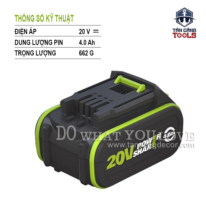 Nên sử dụng với bộ sạc Lithium WA3922 20 volt.