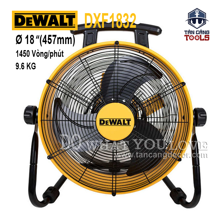 - Quạt Sàn Công Nghiệp 18 Inches 3000W Dewalt DXF1832 thuộc dòng quạt công nghiệp có chức năng đối lưu không khí và có chân đứng sẽ thuận tiện hơn cho việc làm mát cục bộ. Ngoài ra, với góc độ tự xoay, người dùng sẽ dễ dàng điều chỉnh góc quay thích hợp với từng mục đích sử dụng của mình.