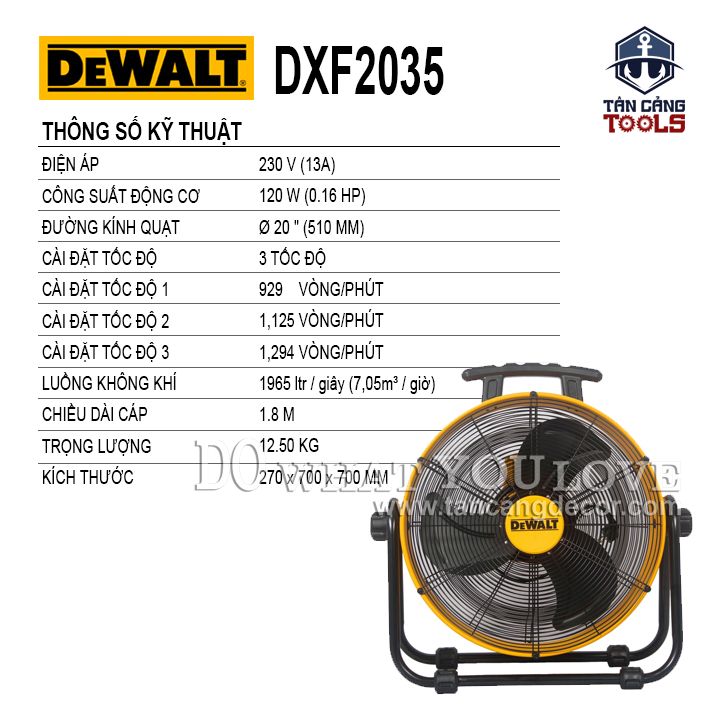 Quạt Sàn Công Nghiệp 20 Inches 120W Dewalt DXF2035