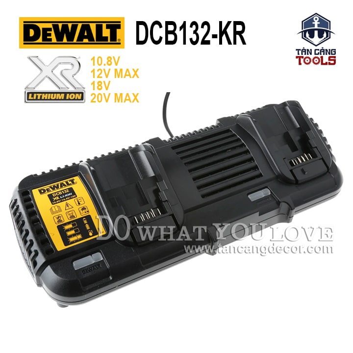 - Sạc Pin Đôi 18V 60V DeWalt DCB132-KR là loại sạc pin trụ sạc 2 bên cho các dòng pin 18V/60V, phù hợp với hầu hết loại 1.5Ah, 2.0Ah, 4.0Ah. Sạc pin DeWalt có thiết kế nhỏ gọn, thời gian sạc nhanh và độ bền cao.