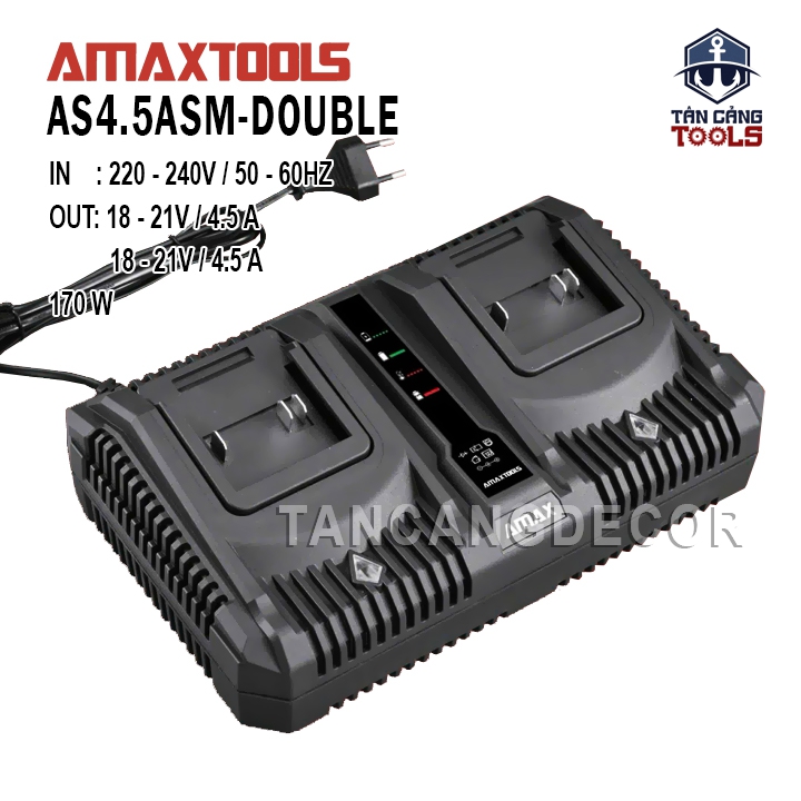 - Với khả năng sạc nhanh, hiệu quả và an toàn, Sạc Pin Đôi 20V 4.5 Ah Amaxtools AS4.5ASM-DOUBLE sẽ giúp bạn tiết kiệm thời gian và nâng cao hiệu quả công việc.