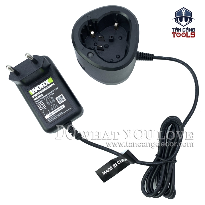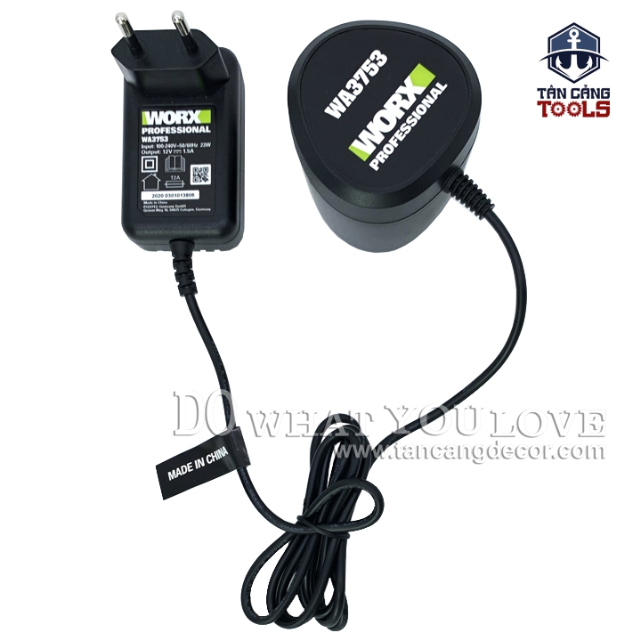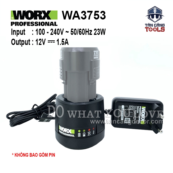 - Sạc Pin Worx WA3753 12V áp dụng cho toàn bộ dòng pin 12V của hãng WORX GREEN.