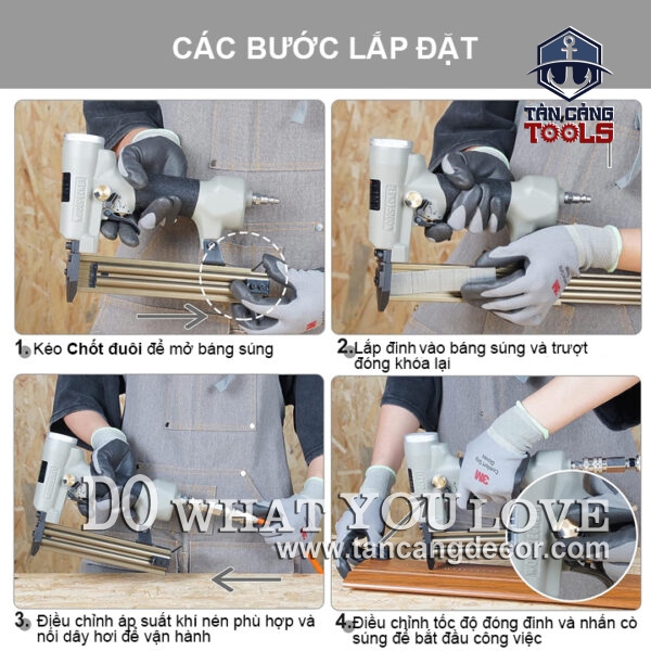 - Súng bắn đinh ghim thẳng phù hợp cho việc trang trí trong nhà, làm bảng quảng cáo, đóng pallet thùng gỗ, lắp ráp đồ nội thất, khung kính, khung tranh, bọc sopha, bọc đệm, ghế ô tô….