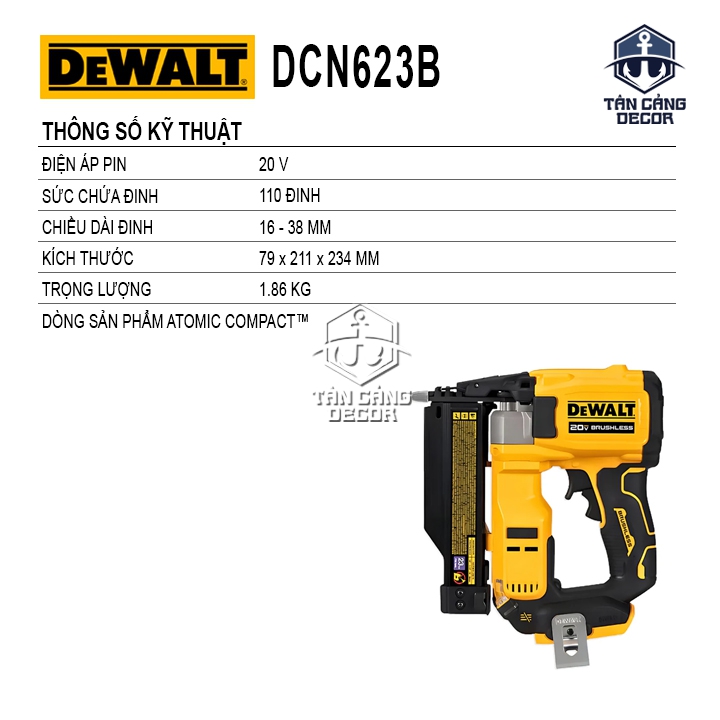 - Súng Đinh Chỉ – Đinh Đồng Dùng Pin 20V Dewalt DCN623.