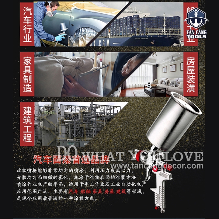 Súng Phun Sơn Gravity Feed HVLP E300 700 cc Bình Trên