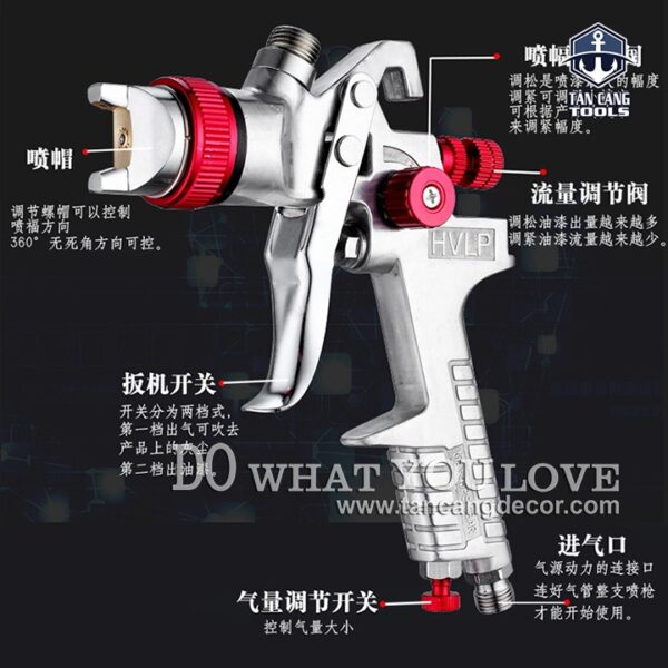 Súng Phun Sơn Gravity Feed HVLP E300 700 cc Bình Trên