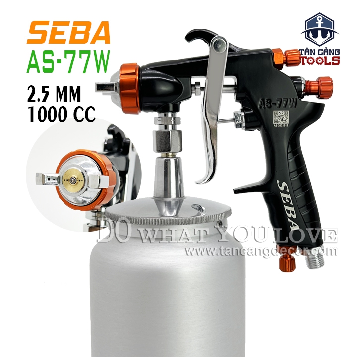 - Súng Phun Sơn Seba AS – 77W 2.5 mm – 1000 cc ( Chuyên Phun Keo ) có dung tích bình chưa lớn cho khả năng chứa vật liệu nhiều hơn, với cơ