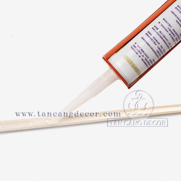 - Bước 1: Cắt phần đầu của Súng bắn keo silicon phù hợp với kích thước của chỗ cần dán. Nên cắt đầu tuýp nghiêng nhẹ khoảng 45 độ rồi lắp vòi bắn keo vào chai keo vừa cắt, vặn chặt vừa phải, tránh vặn chặt quá sẽ bị vỡ đầu vòi làm hỏng chai keo trước khi lắp lọ keo vào súng.