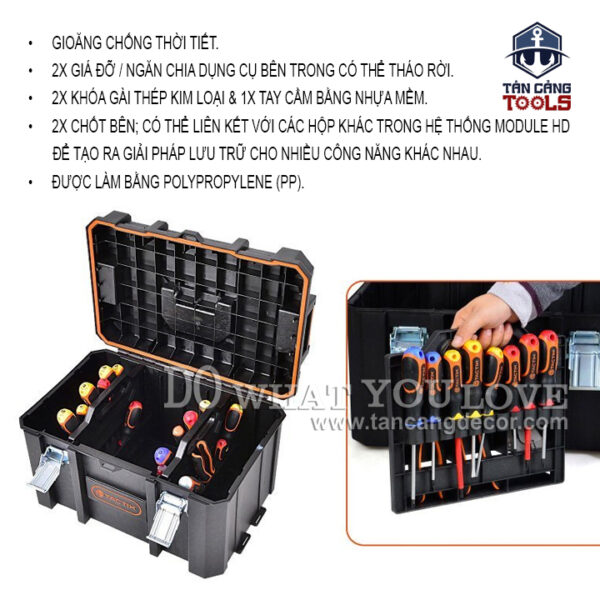 - Với thiết kế bắt mắt, tiện dụng, giá thành phù hợp, sản phẩm chính là vật dụng không thể thiếu cho anh em công trình trong việc chuẩn bị đồ nghề và bảo quản công cụ.