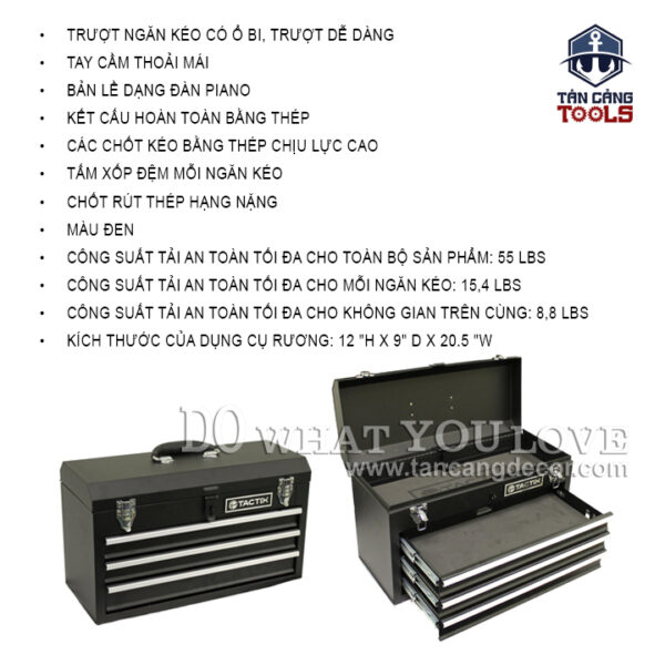 - Được trang bị mỗi 3 ngăn kéo chuyên dụng.Được sử dụng rộng rãi trong nội thất, sửa chữa công trình, sửa chữa xe máy….