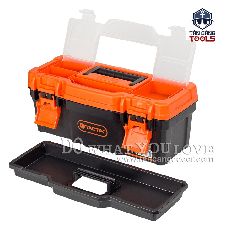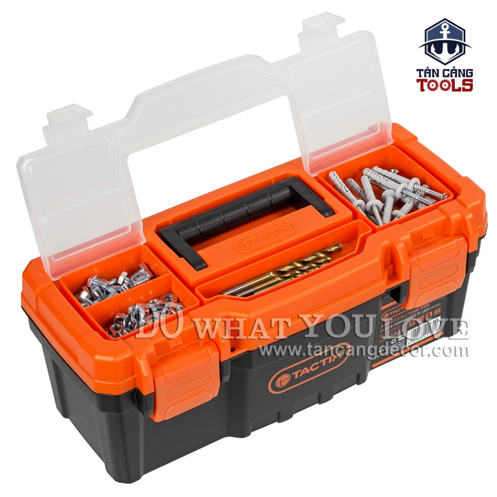 THÔNG TIN SẢN PHẨM: Thương Hiệu : TACTIX Mã Hiệu : 320103 Xuất Xứ : Trung Quốc. Màu Sắc : Màu Cam – Đen Chất Liệu : Nhựa Cứng Tổng Hợp Kích Thước Tủ : Ngang 330 x Rộng 154 x Cao 132 mm. Chốt Khóa Nhựa Chắc Chắn Sản Phẩm Gồm Phần Đựng Chi Tiết Nhỏ Mặt Trên, Tấm Ngăn Bên Trong. Trọng Lượng : 300 Gram. Mặt Đáy Đúc Liền Khối Chắc Chắn.