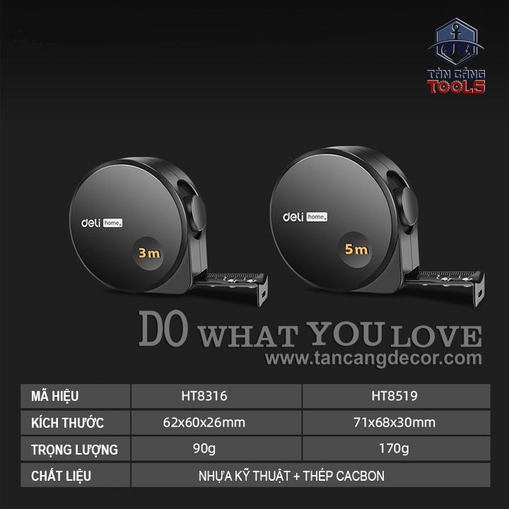 - Thước Cuộn Thép 5.0 M Deli HT8519 là dòng thước cao cấp phiên bản Home Series với độ chuẩn xác đồng bộ cao hơn so với dòng thước thị trường.