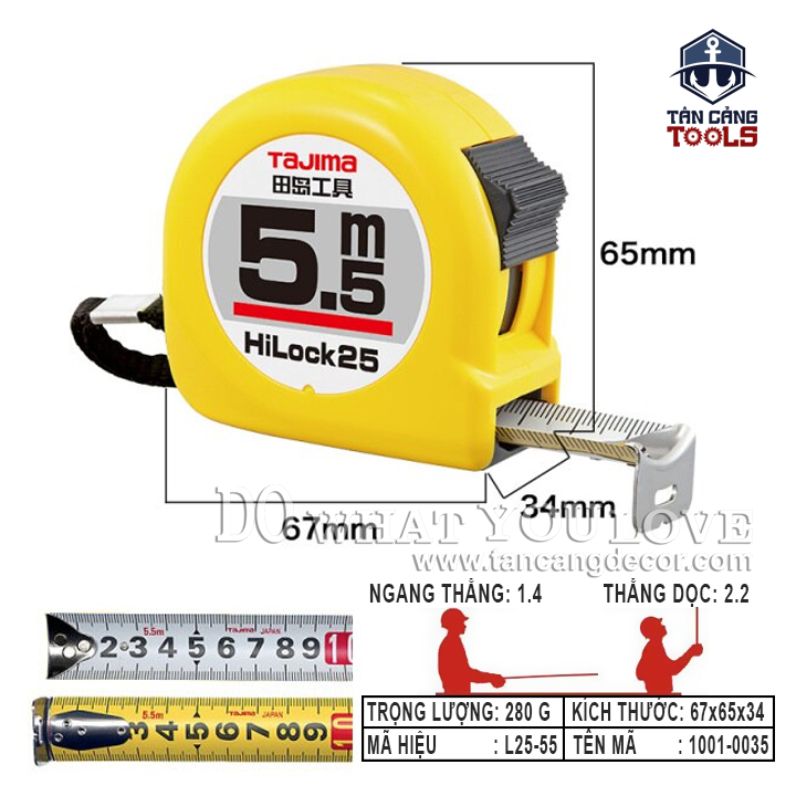 Thước Cuộn Thép 5.5M TAJIMA L25-55 là dòng thước cao cấp với độ chuẩn xác đồng bộ cao hơn so với dòng thước thị trường.