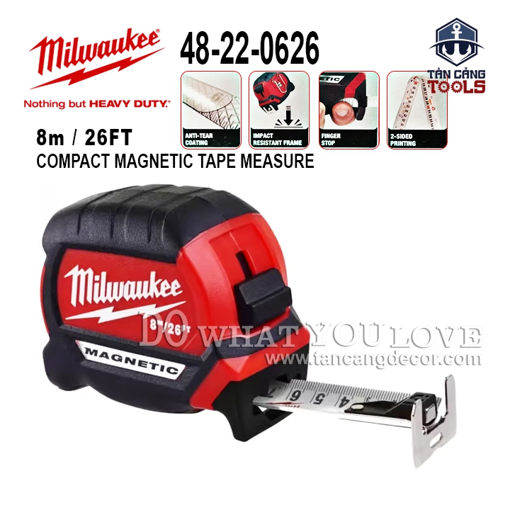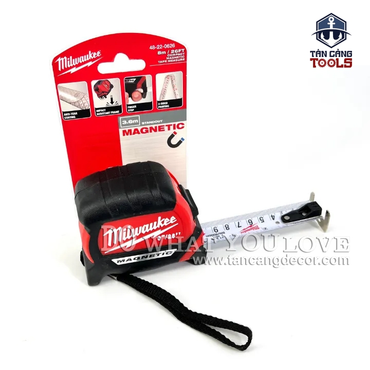 - Thước Cuộn Thép 8 M Milwaukee 48-22-0626 Có Tích Hợp Nam Châm.
