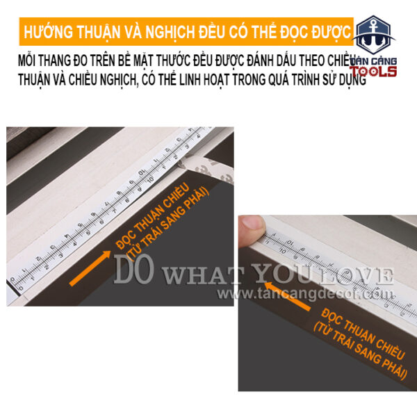 - Thước dán được cấu tạo từ niken chống rỉ có khả năng chống thấm nước, không bị mờ, bong tróc.