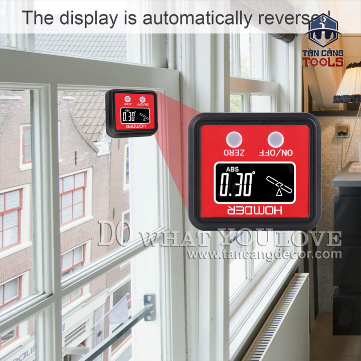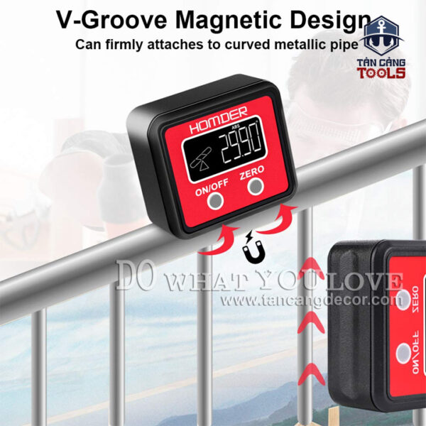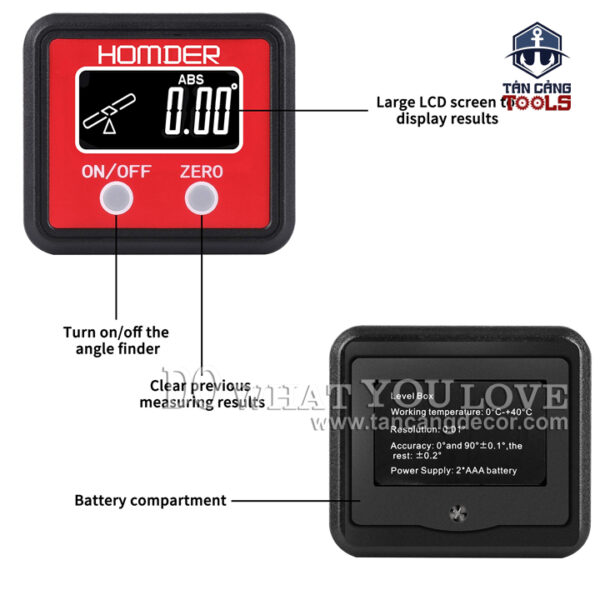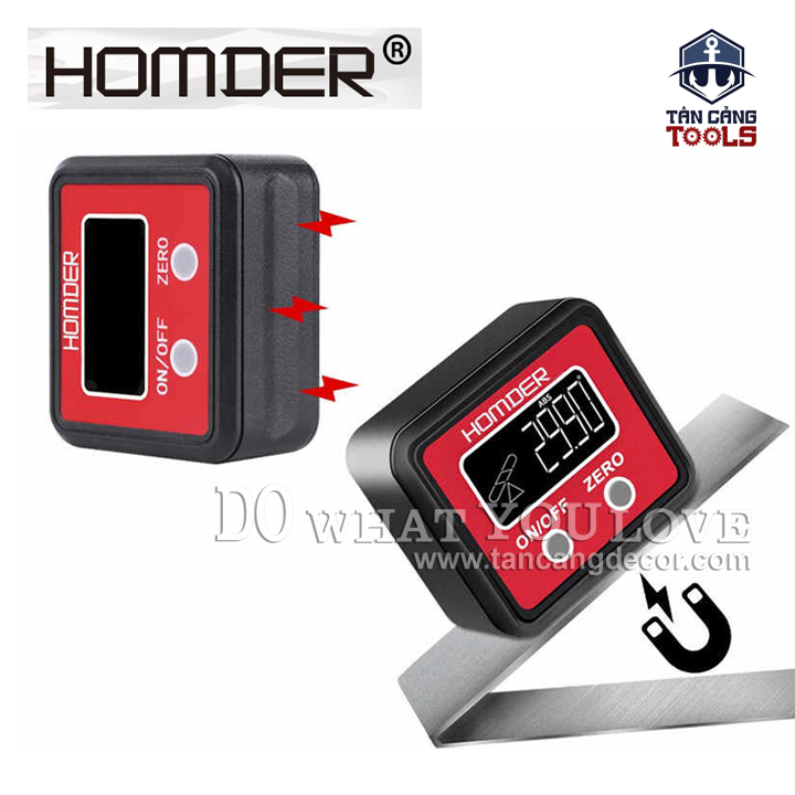 - Thước Đo Góc Nghiêng Điện Tử Homder là sản phẩm hỗ c trợ trong việc lấy góc nghiêng của sản phẩm , góc nghiêng lưỡi cưa có độ chính xác cao.