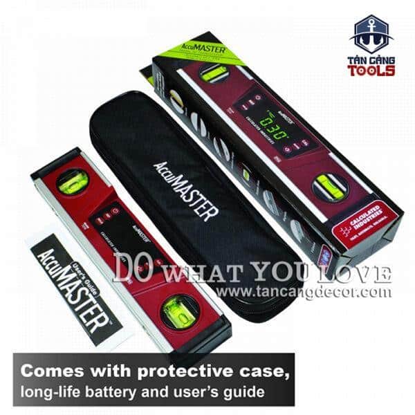 - Thước Nivo Đo Cân Bằng Điện Tử 25 cm AccuMaster 7210 với tính năng do góc – Đặt hoặc kiểm tra góc ray bằng màn hình LCD (chẳng hạn như 15 độ).