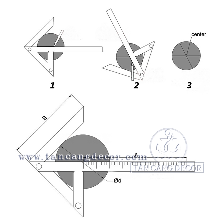 Dụng cụ có tính năm đánh dấu tâm trên đĩa tròn và trục