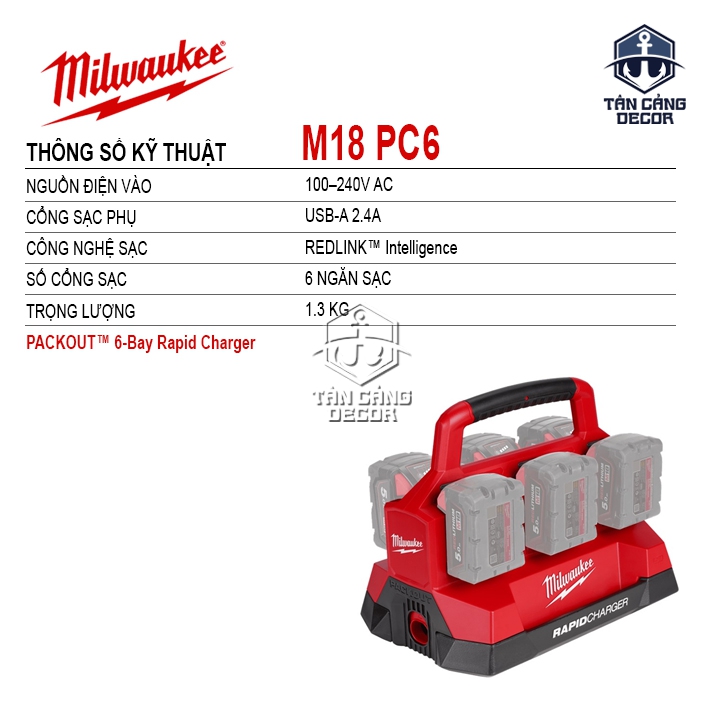 Trạm Sạc Nhanh 6 Cổng Milwaukee M18 PC6