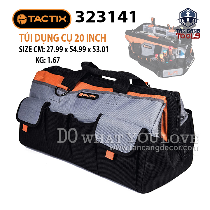 THÔNG TIN SẢN PHẨM: Thương Hiệu : TACTIX Mã Hiệu : 323141 Xuất Xứ : Trung Quốc. Màu Sắc : Màu Cam – Đen Chất Liệu : Vải Oxford Chống Nước. Kích Thước Túi : Ngang 549 x Rộng 290 x Cao 530 mm. Trọng Lượng : 1600 Gram. Đế Túi Tăng Cường 6 Bản Nhựa Cứng Lớn Bên Ngoài Gồm 8 Ngăn Nhỏ, Bên Trong Có 6 Ngăn Nhỏ 2 Bên Hông. Sức Tải : 40 Kg.
