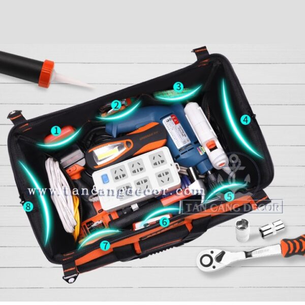 Chất Liệu : Vải Oxford chống nước 1680D – Phần Đáy được làm từ nhựa cứng tổng hợp, đúc nguyên khối chống ăn mòn