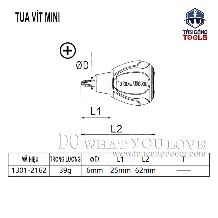 Tuốc Vít Mini Đầu 4 Cạnh PH2 62 mm Tajima 1302 – 2161