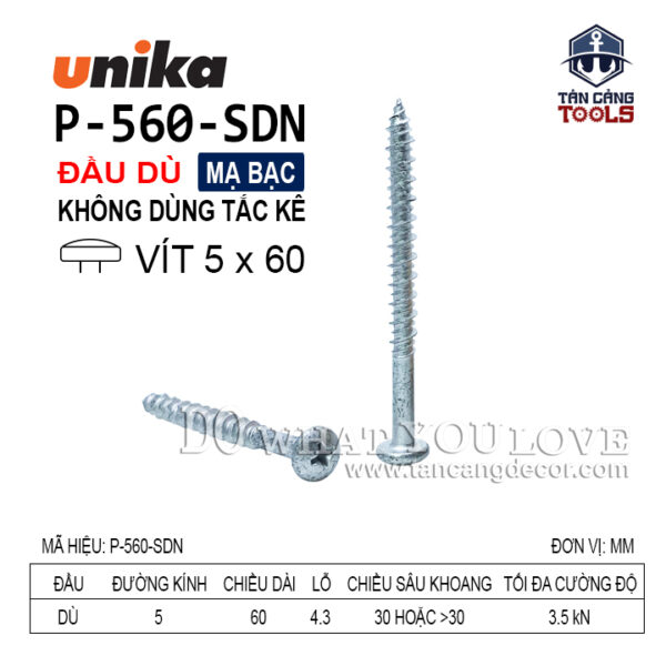 Vít Không Tắc Kê Đầu Dù Unika P560 – SDN ( Hộp 50 Cái )