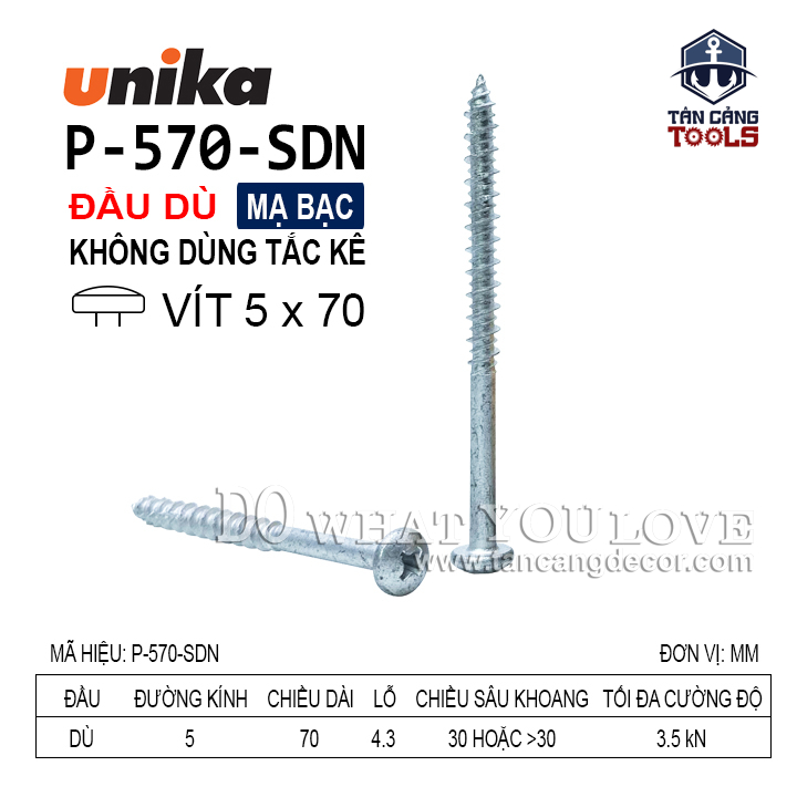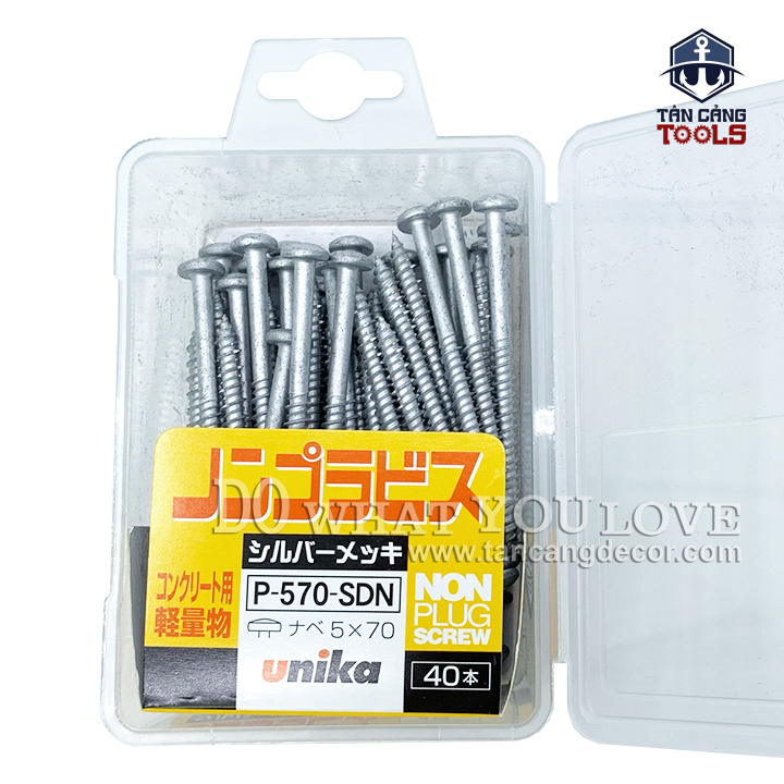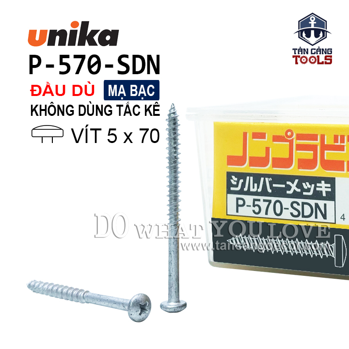 THÔNG TIN SẢN PHẨM: Xuất Xứ : Việt Nam Thương Hiệu : UNIKA – Hàng Chính Hãng. Mã Hiệu : P570 – SDN Chất Liệu : Thép Cứng Mạ Bạc Chống Rỉ. Kích Thước : 5 x 70 mm ( Như Hình Vẽ ) Đơn giá bán 1 Hộp 40 Cái. Ngoài ra, còn có nhiều kích cỡ vít khác nhau và mỗi cỡ vít sẽ có quy cách đóng gói số lượng tương ứng.