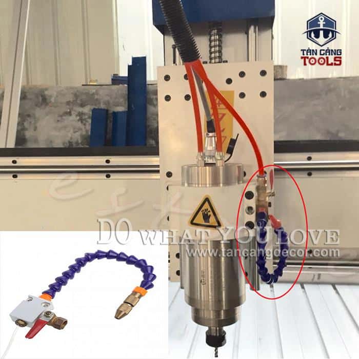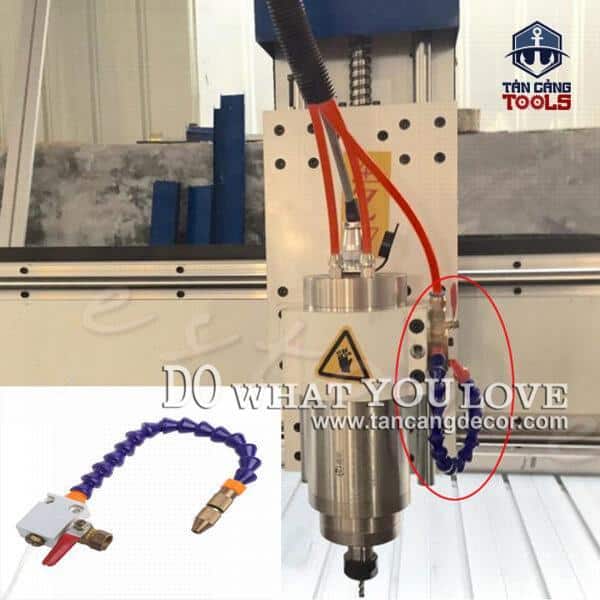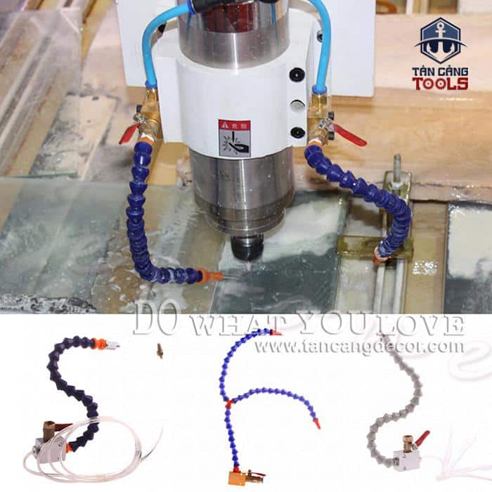 - Khi khí nén thổi ra đầu vòi nó hút theo nước làm mát lưỡi luôn.